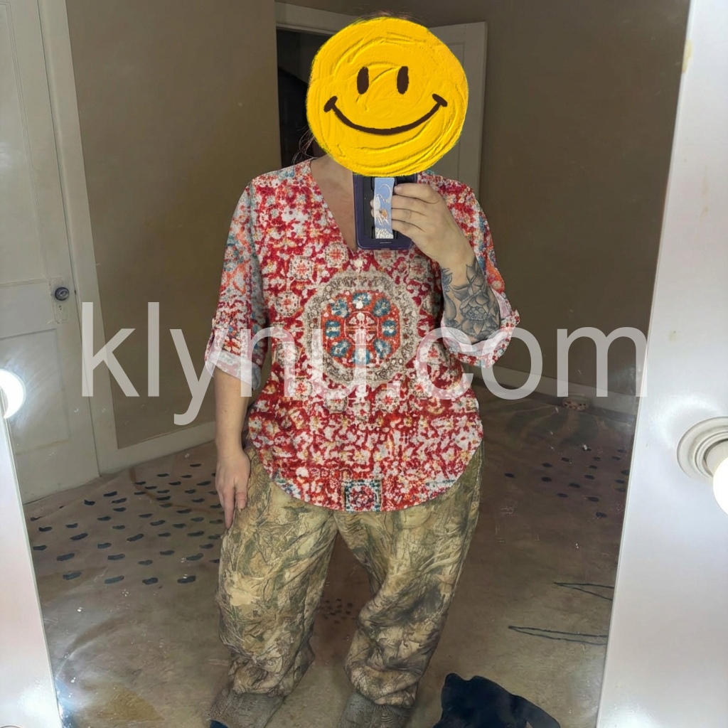 This blouse is a wearable celebration of bohemian artistry. The vibrant red base, printed with intricate ethnic-inspired geometric motifs, makes a bold statement.