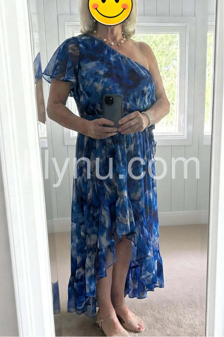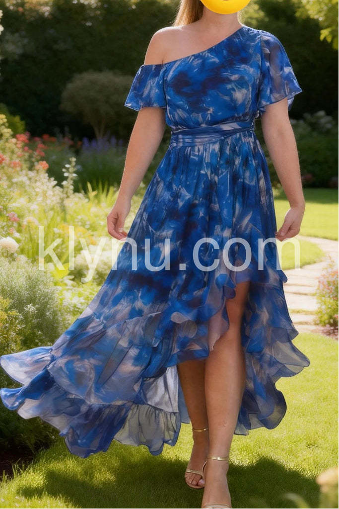 Dramatic Blue Watercolor Maxi Dress
