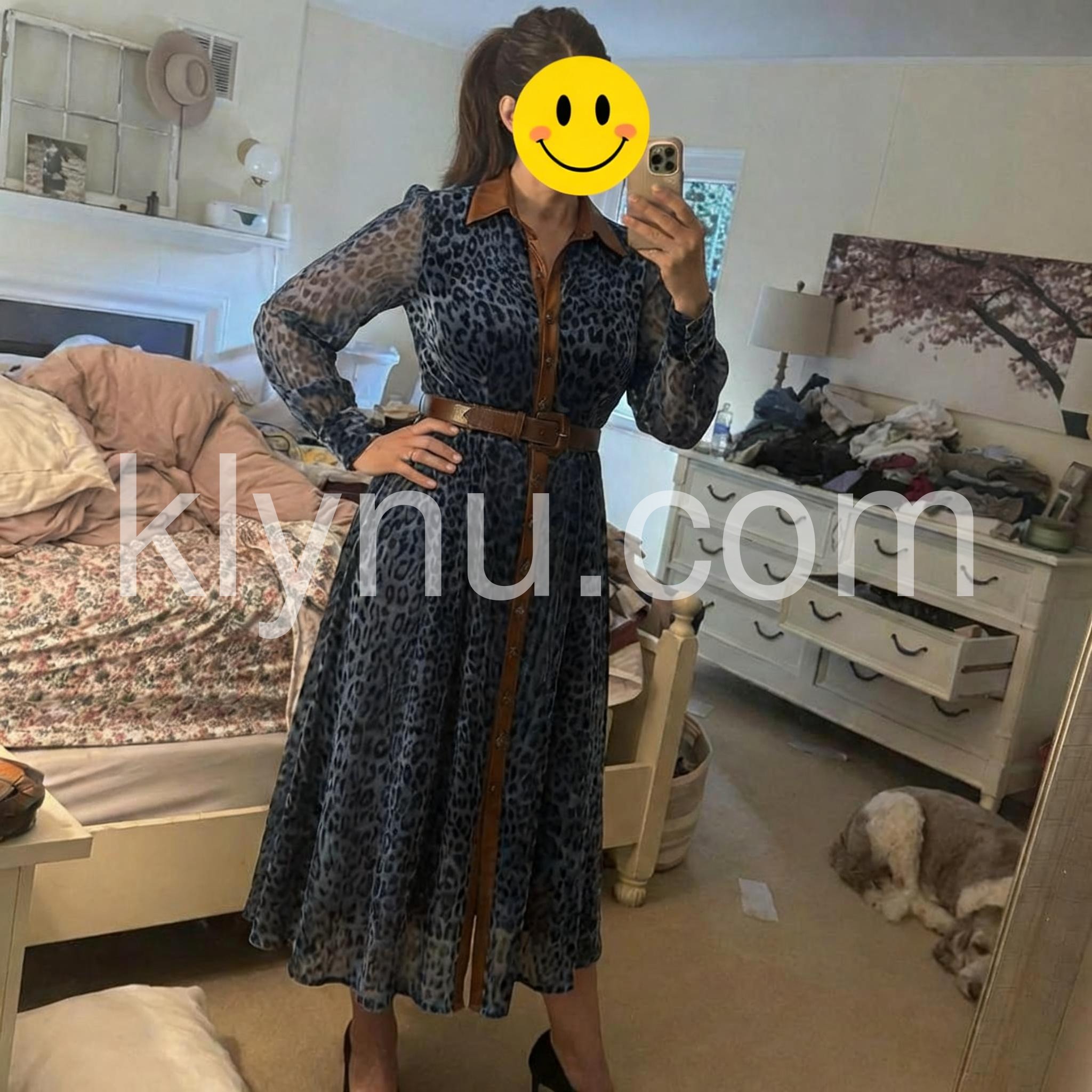 Elevate your wardrobe with this Blue Long Sleeve Leopard Midi Dress, expertly designed to blend bold animal print with a sophisticated silhouette. The long sleeves offer versatility for cooler days, while the midi length ensures a flattering and elegant fit. Crafted to provide both style and comfort, this dress is perfect for making a confident statement at any occasion.
