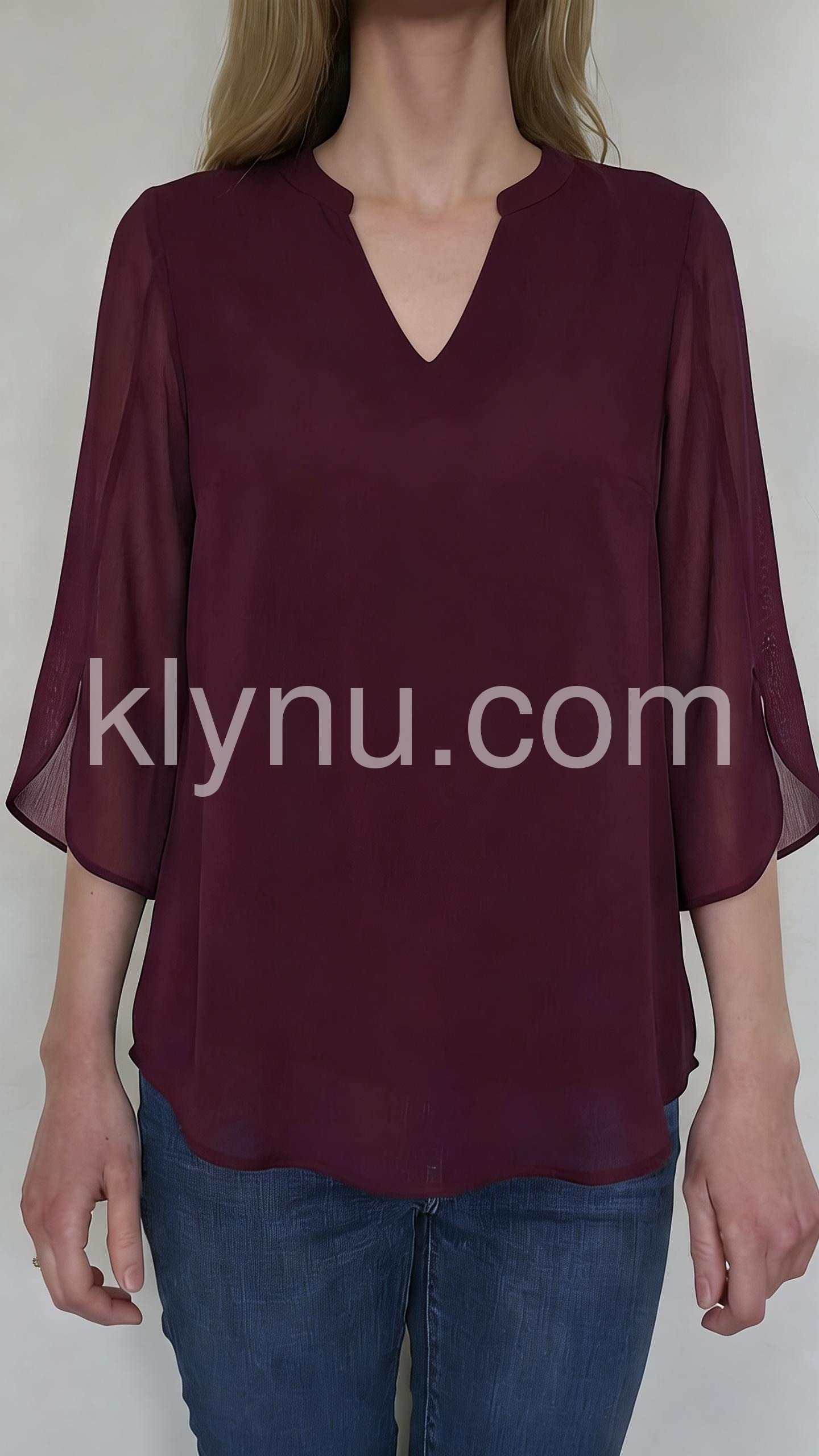 Burgundy 3/4 Sleeve Plain Chiffon Top