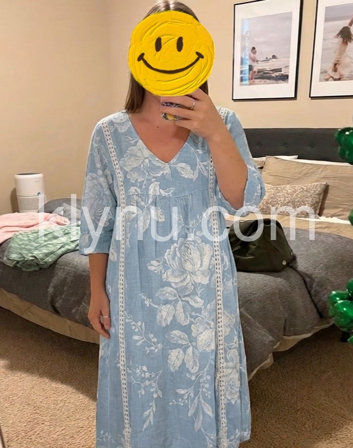This casual midi dress features a flattering V-neck and loose A-line silhouette, offering all-day comfort and a relaxed fit. Crafted from breathable, linen-like fabric, it’s perfect for warm weather and everyday wear.