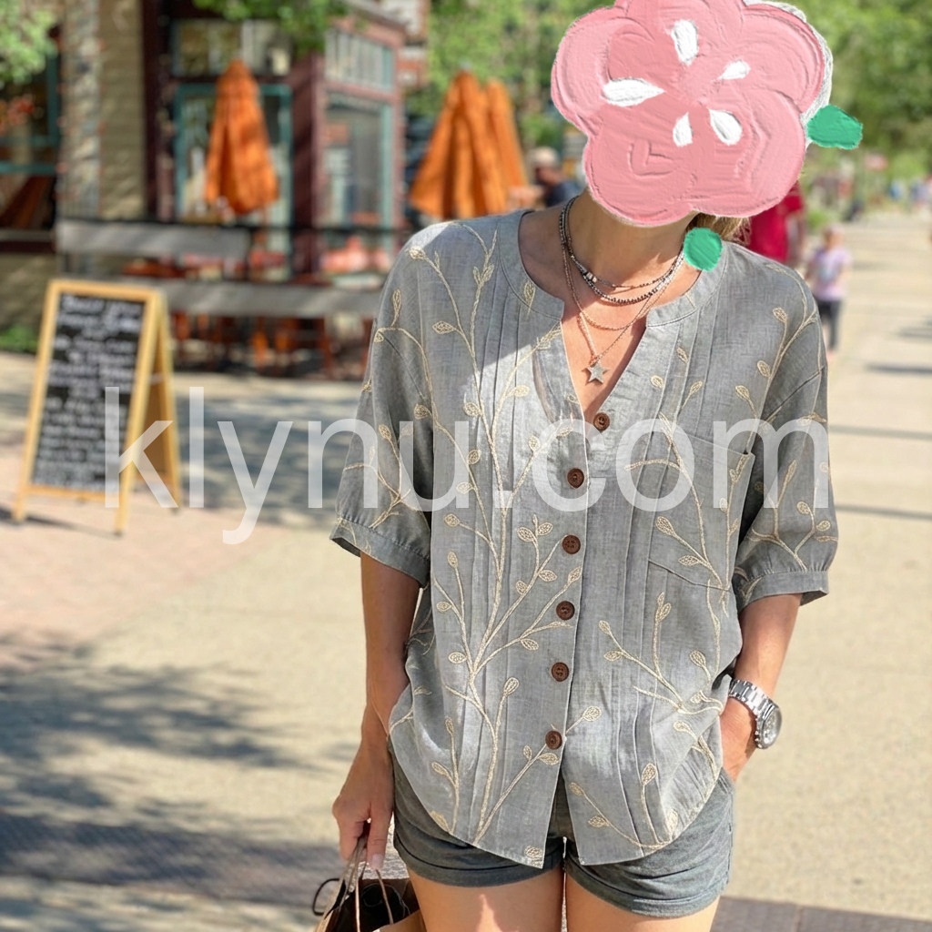 I designed this blouse to bring subtle elegance to everyday wardrobes. The delicate leaf embroidery adds a refined touch without being flashy, making it perfect for both work and casual wear.