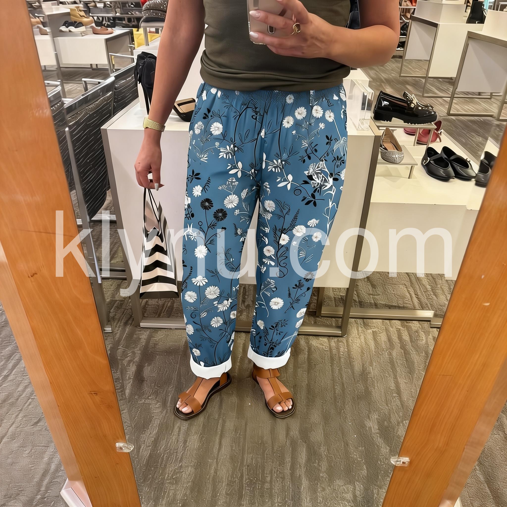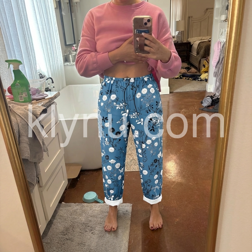 These relaxed-fit pants feature a vibrant blue base with white and black floral patterns. Elastic waistband and cuffed hems offer a cozy, tailored look. Perfect for casual outings or beach days. Lightweight fabric ensures all-day comfort. Effortlessly chic with a bohemian touch.