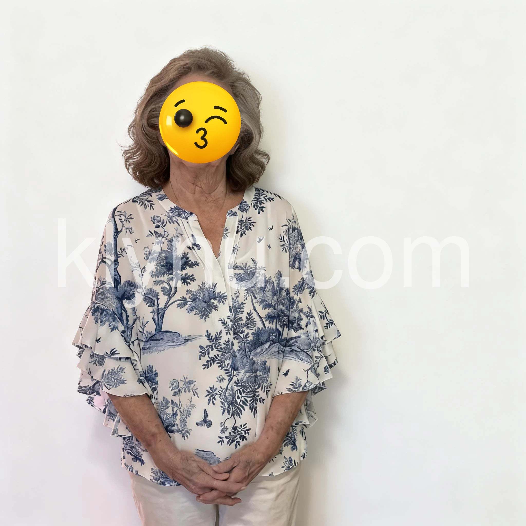 Elevate your wardrobe with this sophisticated blue toile print blouse, featuring a timeless pattern that seamlessly transitions from office to weekend wear. The classic toile design brings refined elegance to any ensemble, while the structured blouse silhouette ensures a polished appearance. Crafted for versatility, this piece pairs effortlessly with tailored trousers, skirts, or denim. The intricate print detail adds visual interest without overwhelming your look, making it an essential addition for those who appreciate understated luxury and enduring style.