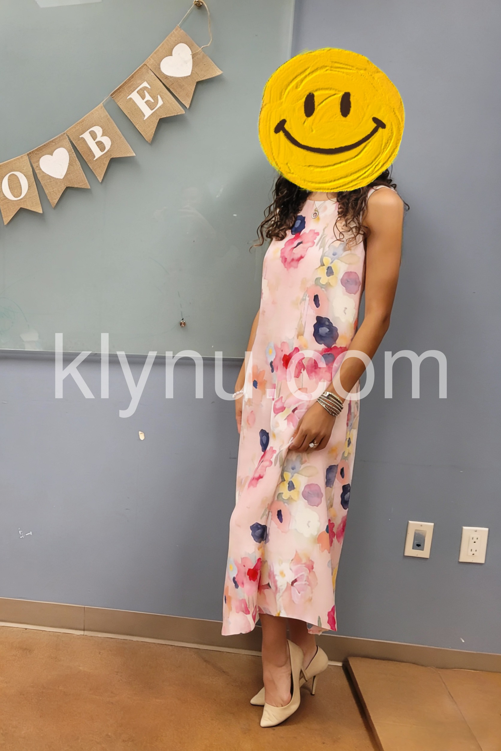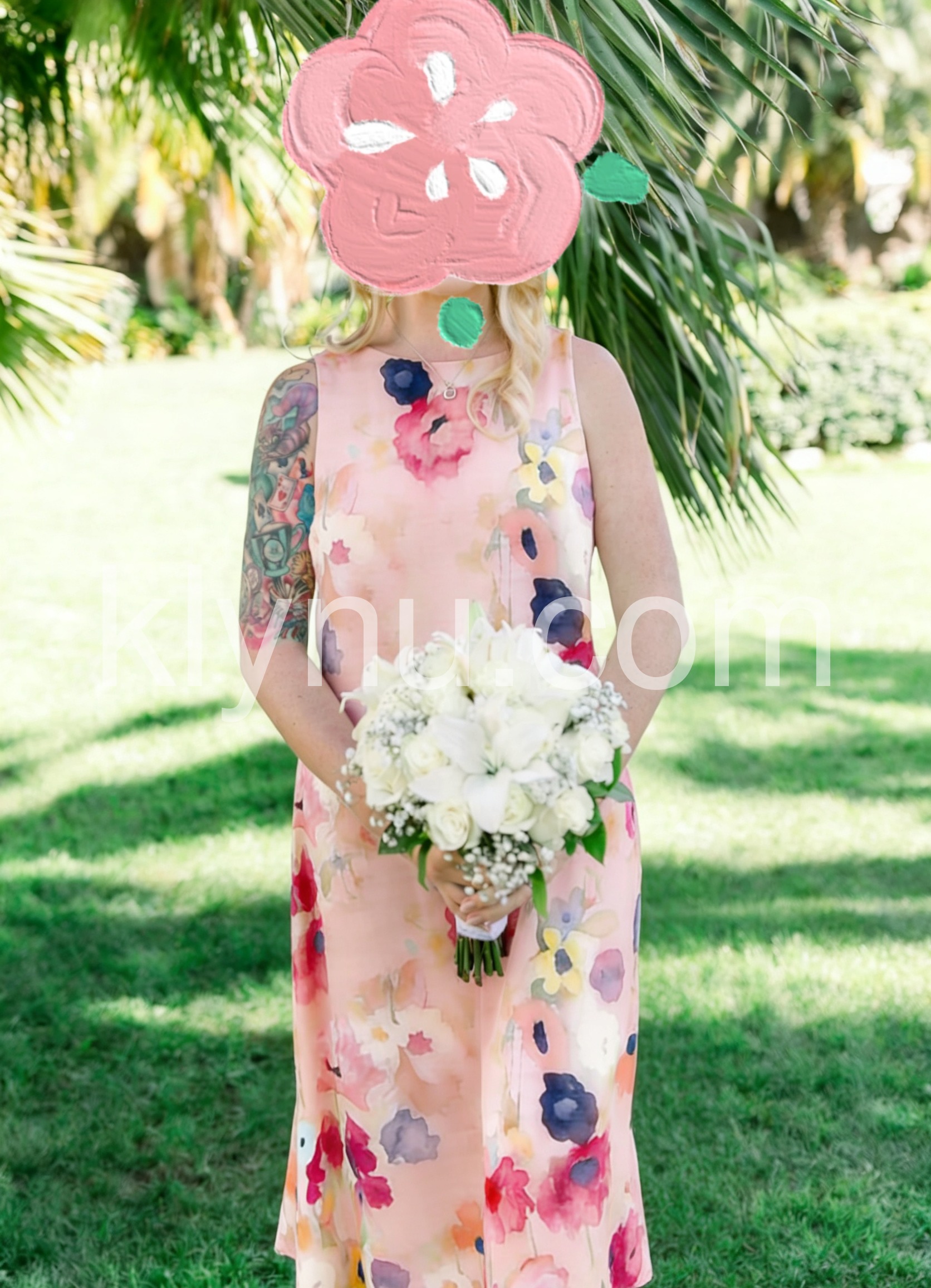 This sleeveless midi dress features a soft pink base with vibrant watercolor floral prints. The round neckline and flowy silhouette create a feminine look. Perfect for summer outings or resort wear. Lightweight fabric for comfort and ease. Ideal for casual elegance by the pool or beach.