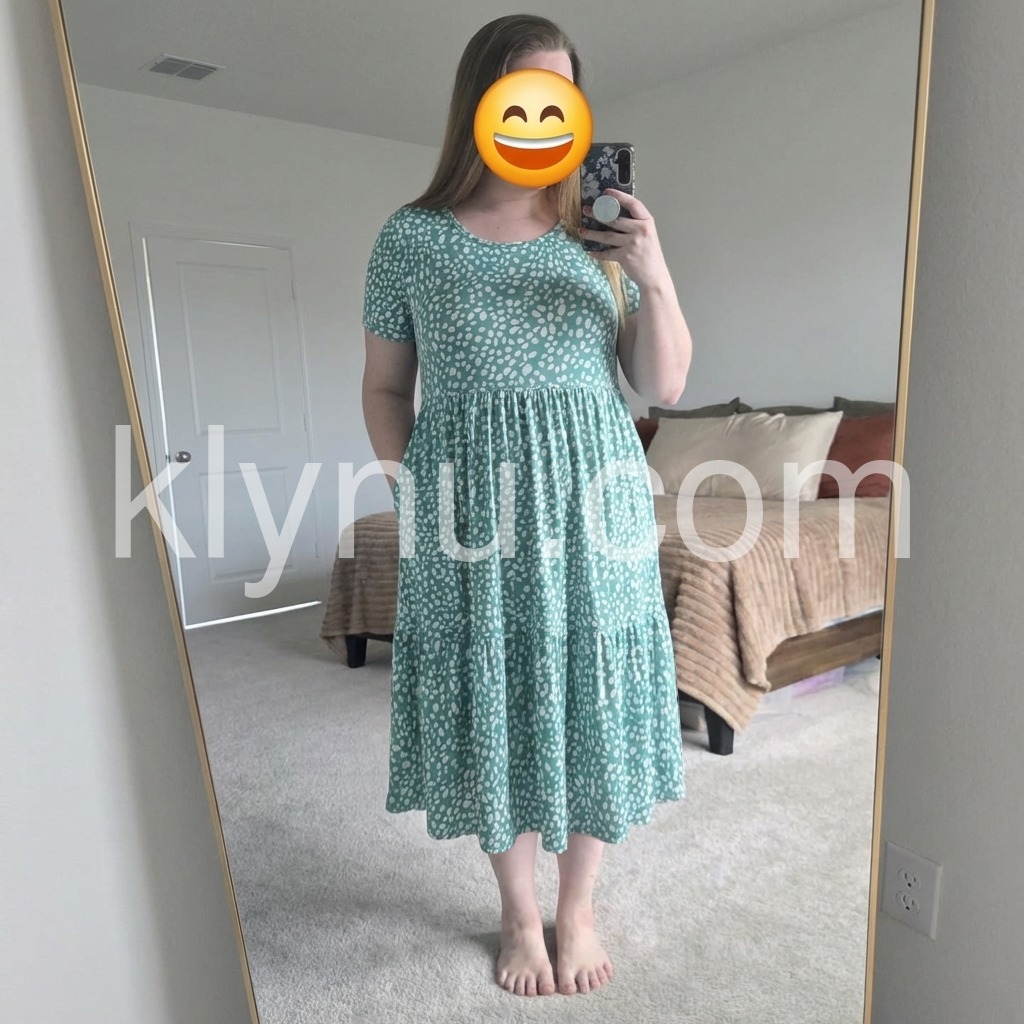 The round neck, flowy A-line fit, and pockets create a comfortable, flattering silhouette, perfect for everyday wear and casual outings.