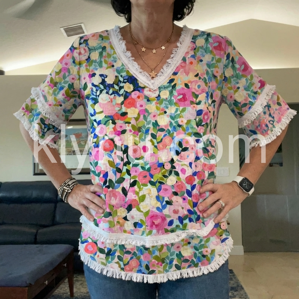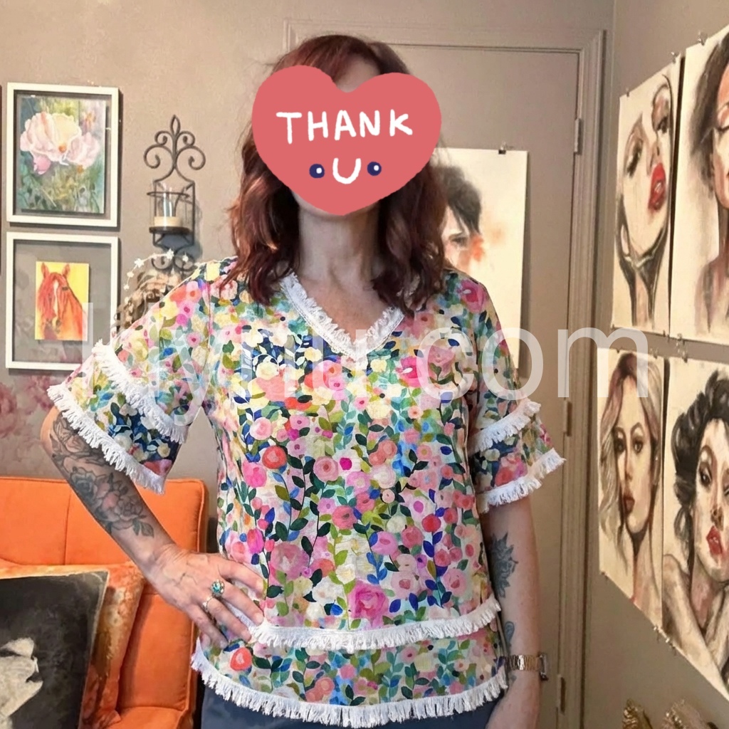 This floral blouse is a mood! The bright, happy flowers make me smile every time I wear it, and the fringe detail is so fun.