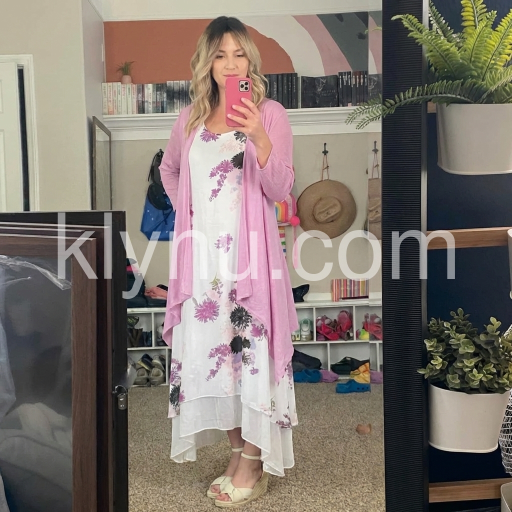Upgrade your wardrobe with our Chic Floral Print Midi Dress! This versatile piece comes with a stylish outerwear, perfect for any occasion. The elegant floral print adds a touch of sophistication, while the mid-length design provides both comfort and style. Elevate your fashion game with this must-have dress.