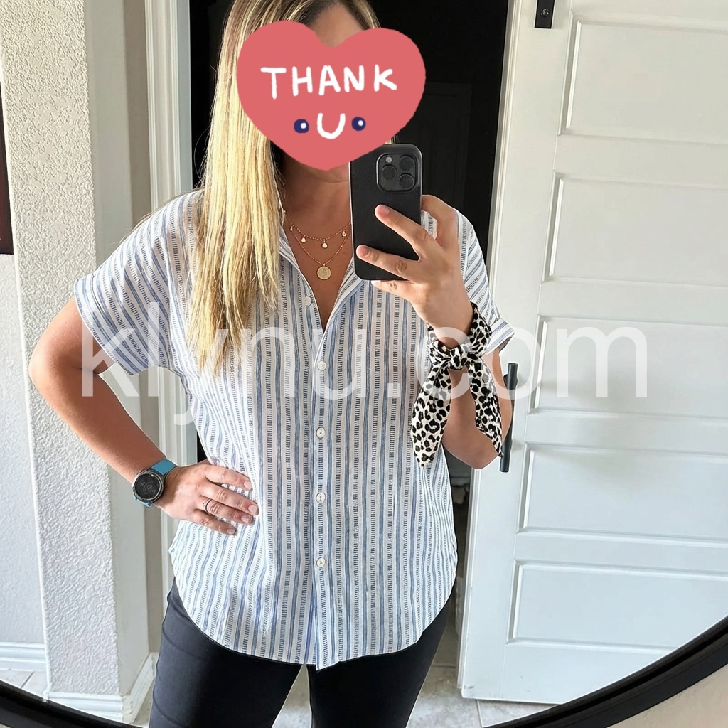 This blue and white striped shirt is a wardrobe staple! The classic print is timeless, and the oversized fit is so on-trend.