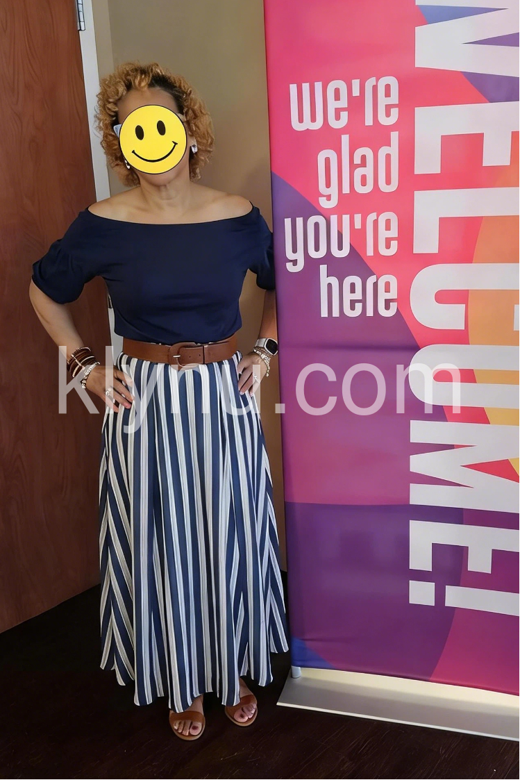 The off-shoulder top shows just the right amount of skin, while the flowy striped pants make you look like a fashion icon (without the effort).