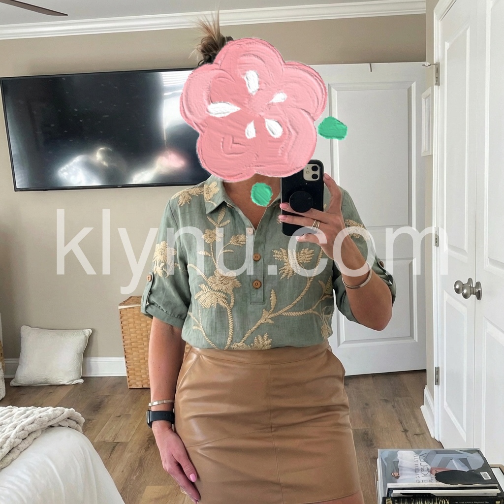 This blouse is a celebration of artisanal luxury. The muted sage base, adorned with intricate golden floral embroidery, evokes timeless sophistication.