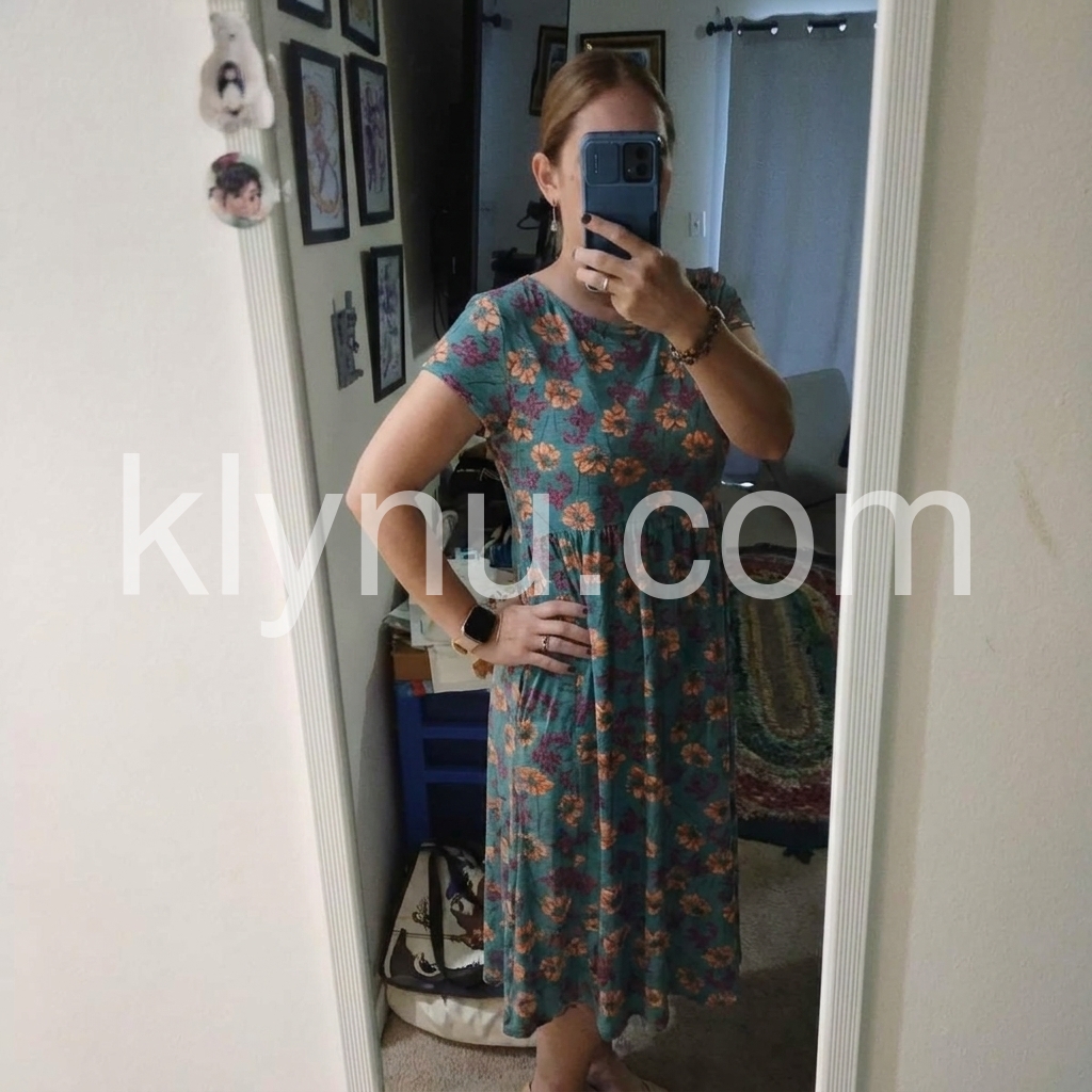 This floral dress brings bohemian charm to everyday wear. The rich teal base with soft pink and purple flowers feels unique and earthy, while the relaxed A-line silhouette skims over curves. The loose fit avoids clinging to midsection areas, making it ideal for casual wear.