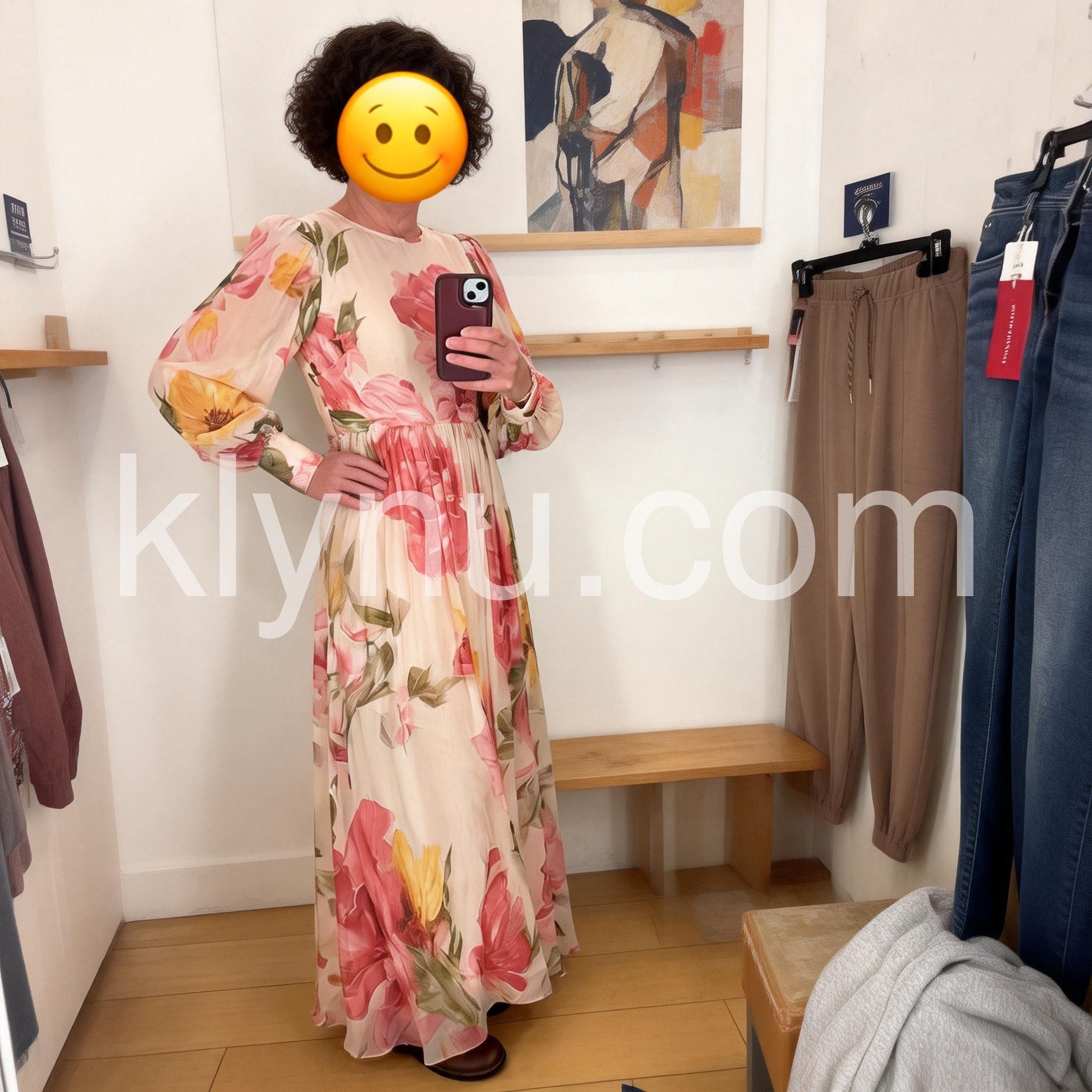 Elevate your wardrobe with this sophisticated midi dress, featuring an enchanting floral print that captures timeless elegance. The long sleeves provide refined coverage while the high waist creates a flattering silhouette that elongates the frame. Cut to midi length, this piece transitions seamlessly from daytime occasions to evening gatherings. The romantic botanical design adds visual interest without overwhelming the eye, making it a versatile choice for those who appreciate understated luxury. Perfect for creating polished, put-together looks with minimal effort.