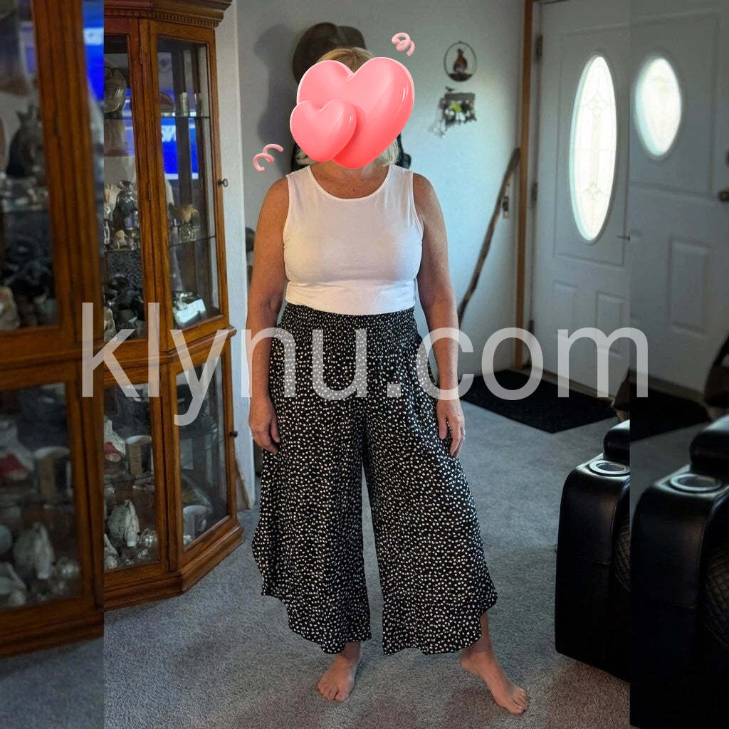 These black and white pants feature a comfortable and adjustable elastic waistband, making them perfect for all-day wear. Made from high-quality materials, they provide a sleek and stylish look. With their versatile color scheme, these pants are a must-have addition to your wardrobe.