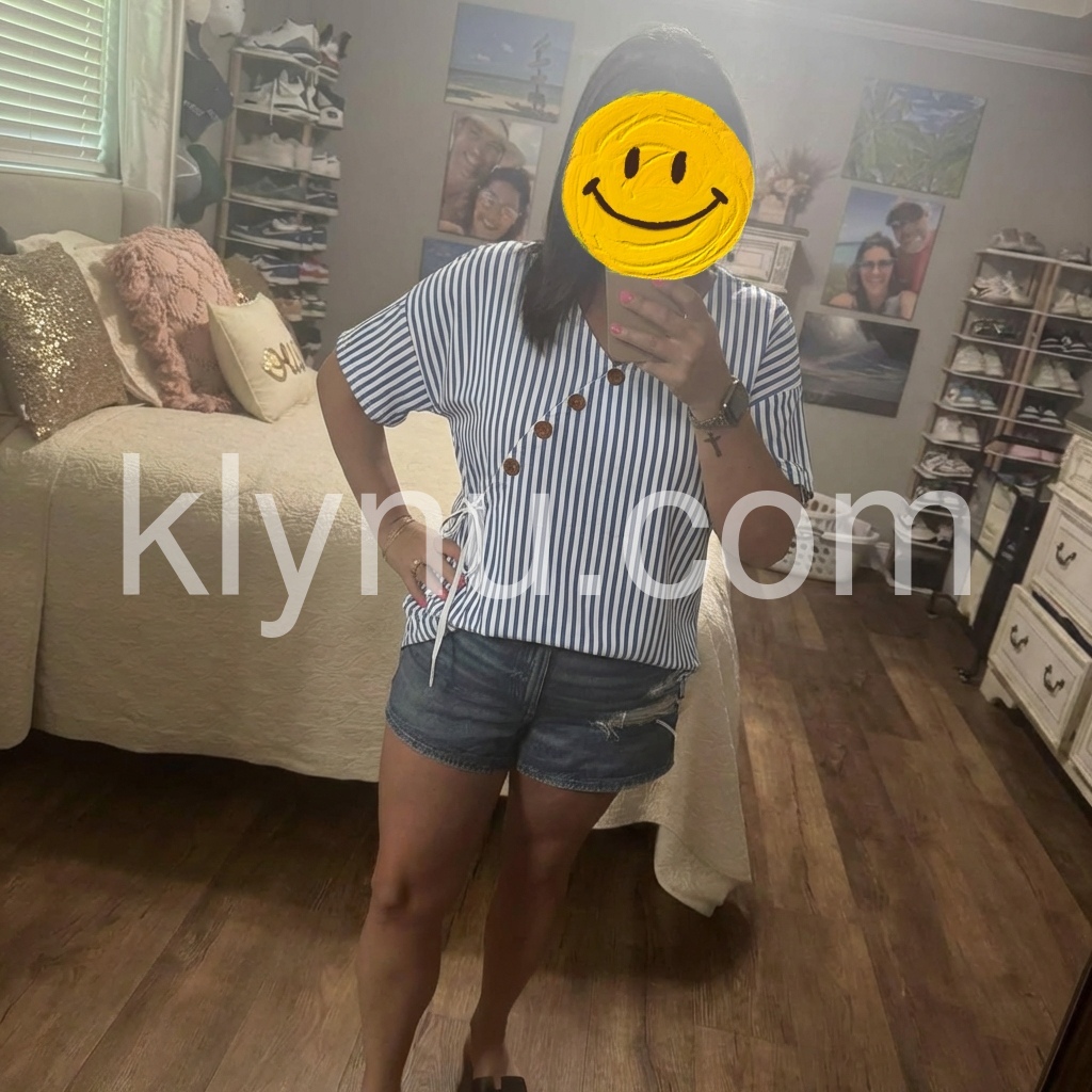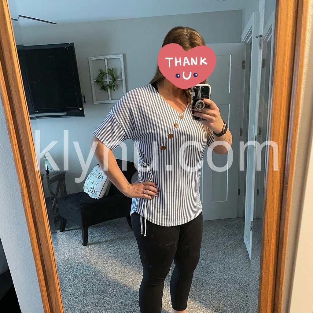 Blue White Stripe Wrap Tie Waist Blouse