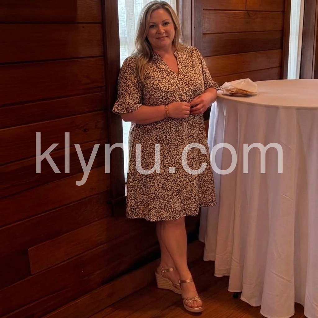 This min-length wrap dress features a soft, abstract floral print in neutral tones. V-neckline with flared short sleeves for a feminine touch. Flowy silhouette perfect for warm weather. Ideal for casual outings or brunch dates. Stylish and effortless elegance.