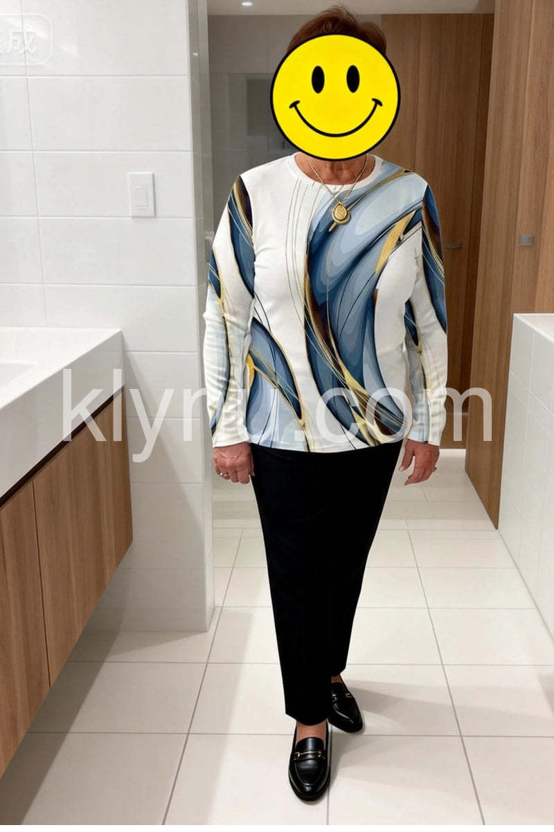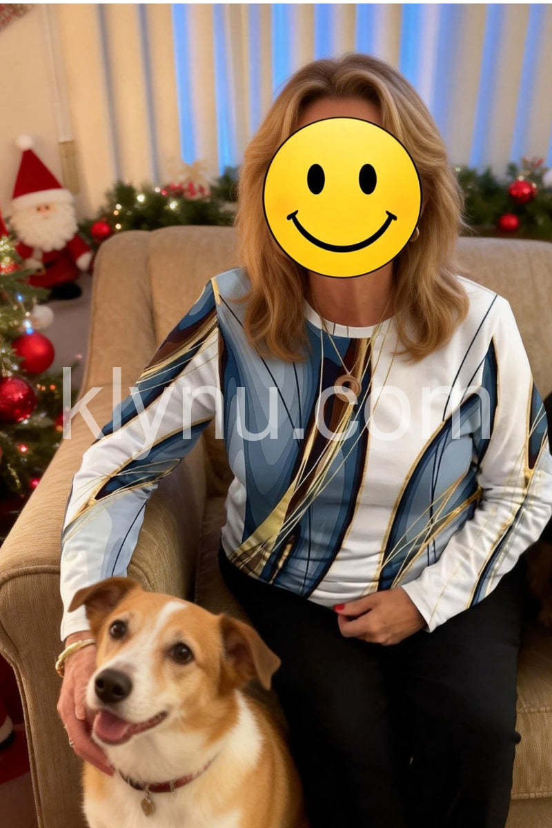Elevate your wardrobe with this Stunning Geometric Print Round Neck Long Sleeve Top. Designed with a modern geometric pattern, it offers a sophisticated look suitable for both professional and casual settings. The round neck and long sleeves provide comfortable coverage, making it ideal for layering or wearing alone. Crafted to combine style and practicality, this top enhances your outfit with a contemporary edge while ensuring all-day comfort.