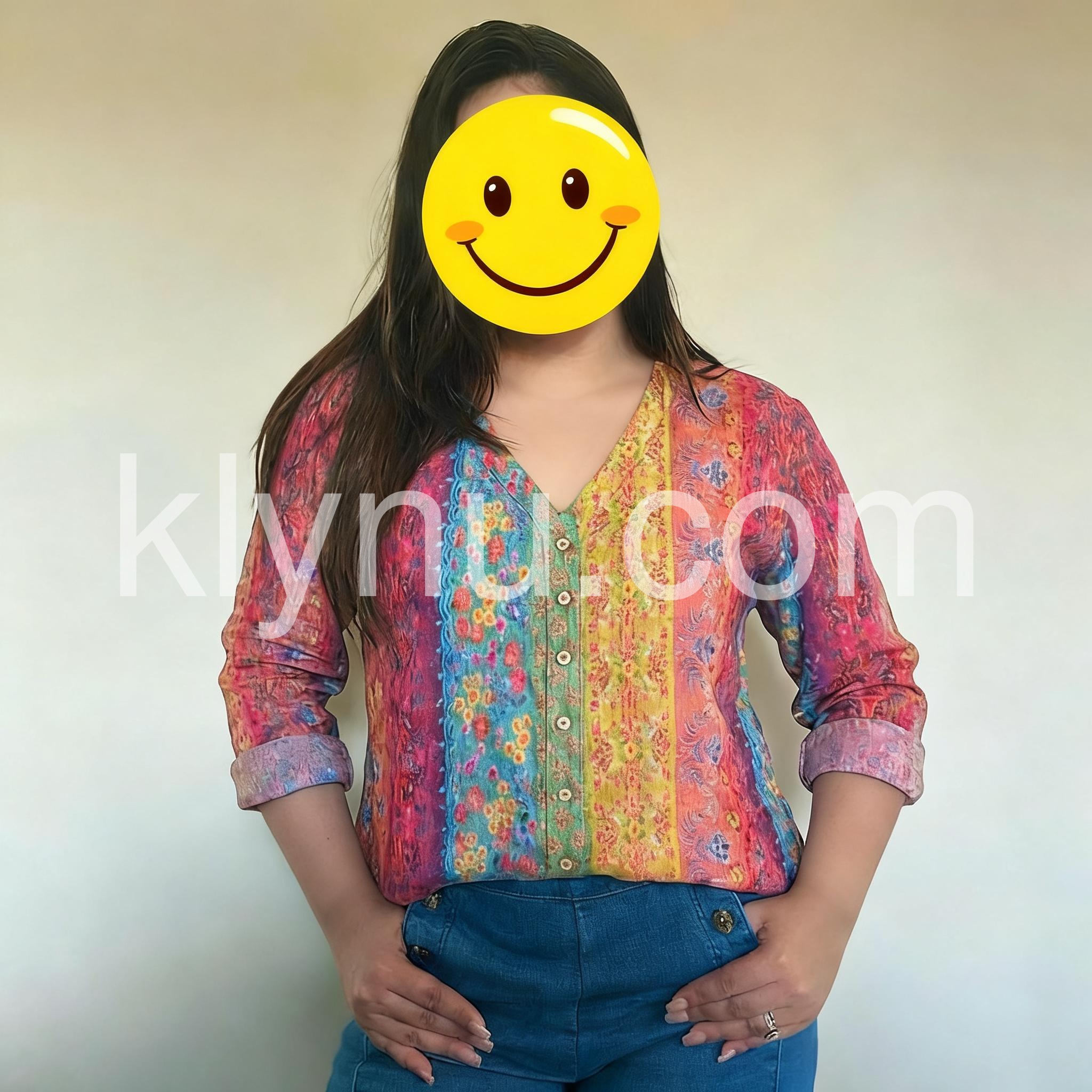 Embrace free-spirited style with this Stunning Colorful Boho Print Top, a vibrant and eye-catching piece that brings bold artistry to everyday wear. Crafted from lightweight, breathable fabric—likely cotton or rayon blend—this long-sleeve tunic features a richly detailed print combining floral motifs, paisley patterns, and vertical stripes in a lively mix of fuchsia, turquoise, mustard yellow, and deep purple. The relaxed, flowy silhouette drapes beautifully, offering comfort and ease while the V-neckline and front button closure add a touch of classic structure. With sleeves that roll up easily for a casual look, it’s perfect for pairing with jeans, leggings, or flowy pants. Styled here with layered necklaces and bracelets, it captures the essence of bohemian elegance with a modern twist. Ideal for weekend outings, summer days, or adding a burst of personality to your wardrobe, this tunic top celebrates color, culture, and effortless charm. Let your style shine with this joyful, artistic statement piece.